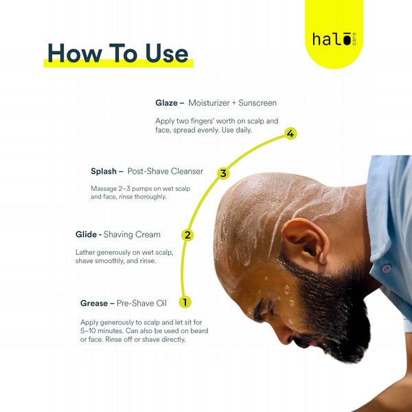 Halo Care's Boldly Bald regime is your ultimate companion to rock that shaved head. This bald head care routine includes: