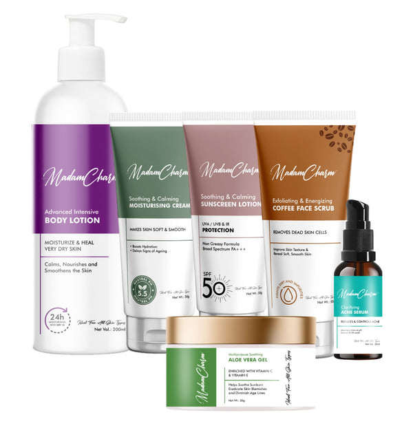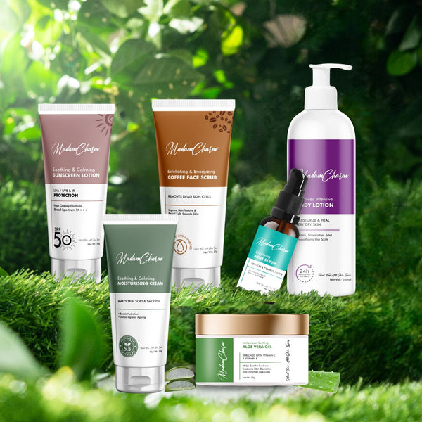 This powerful acne-fighting serum is formulated with potent active ingredients to target blemishes, reduce redness, and clear clogged pores. Lightweight and fast-absorbing, it helps balance excess oil while promoting a smoother, clearer complexion. Ideal for acne-prone skin. Youthful & Nourishing Moisturising CreamExperience deep hydration with this luxurious moisturizing cream enriched with anti-aging nutrients. It helps to restore skin elasticity, reduce the appearance of fine lines, and provide a healthy, youthful glow. Suitable for all skin types, especially dry and mature skin. Exfoliating & Energizing Coffee Face ScrubAwaken your skin with this energizing coffee scrub, crafted to gently exfoliate dead skin cells and impurities. Infused with coffee and antioxidants, it promotes smoother texture, brighter skin, and a refreshed look. Perfect for regular use to rejuvenate dull and tired skin. Soothing & Calming SPF 50 Sunscreen LotionProtect your skin from harmful UVA/UVB rays with this lightweight, non-greasy sunscreen lotion. Infused with calming ingredients, it soothes irritation while providing high-performance sun protection. Water-resistant and perfect for all-day wear. Multipurpose Soothing Aloe Vera GelA versatile aloe vera gel enriched with natural soothing properties to hydrate, calm, and nourish your skin. Perfect for after-sun care, soothing irritation, or as a lightweight moisturizer. Gentle enough for all skin types, including sensitive skin. Advanced Intensive Body LotionIndulge your skin with this rich, intensive body lotion designed to lock in moisture for long-lasting hydration. Formulated with skin-replenishing ingredients, it helps repair dryness, leaving your skin soft, smooth, and nourished. Ideal for daily use on dry to very dry skin. Niacinamide Anti-Acne Face Wash Vitamin B3 Madamcharm Clarify+Hydrating Face Wash is Formulated with Niacinamide (Vitamin B3) to Brighten the Skin and Control Excess Oil, Leaving Your Face Refreshed and Radiant. Its Gentle Formula Cleanses Deeply Without Stripping Moisture, Making it Perfect for Everyday Use, Niacinamide Works Synergistically to improve Skin Tone Reduce Blemishes and Enhance Overall Skin.