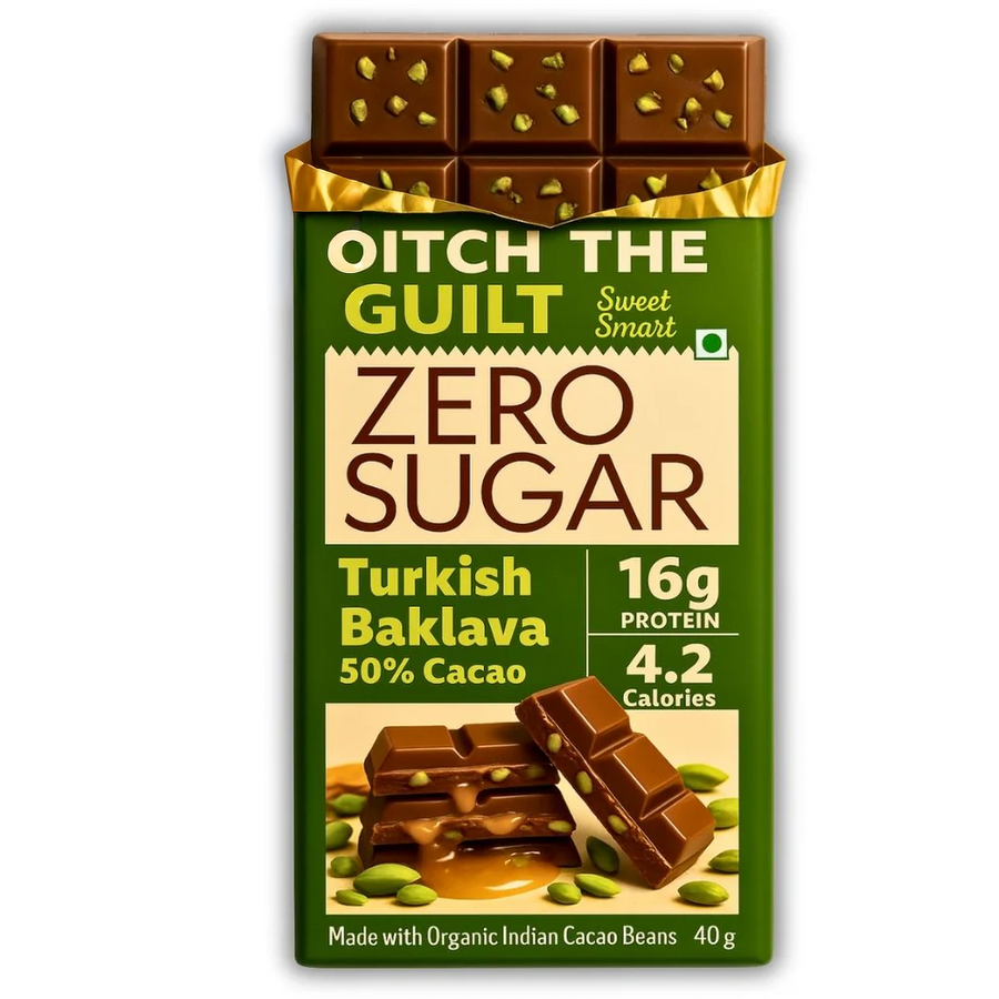 Inspired by the legendary Turkish baklava, this luxurious bar layers rich cacao with crisp, golden philo pastry and roasted pistachios — capturing the essence of the Middle East in every bite. Naturally sweetened with monk fruit and infused with prebiotic fiber, it’s a decadent treat at just 104 Calories Only and zero sugar.