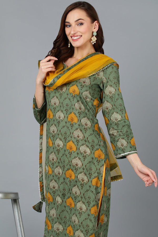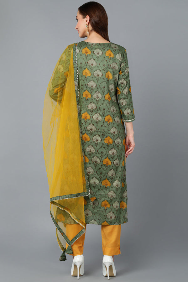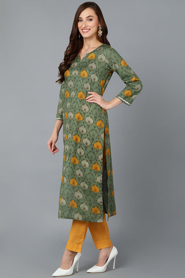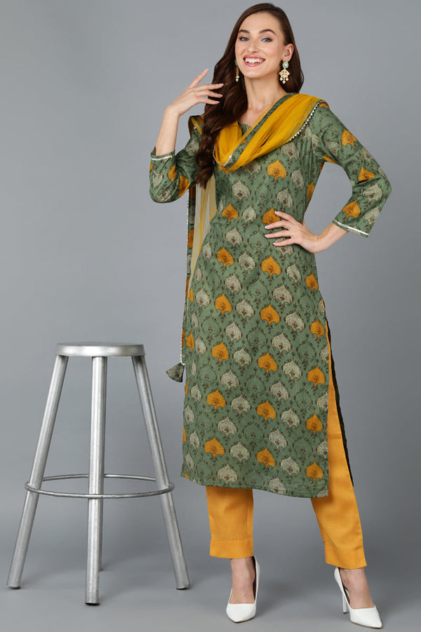 Green Rayon Blend Ethnic Motif Printed Straight Suit Set VKSKD1721