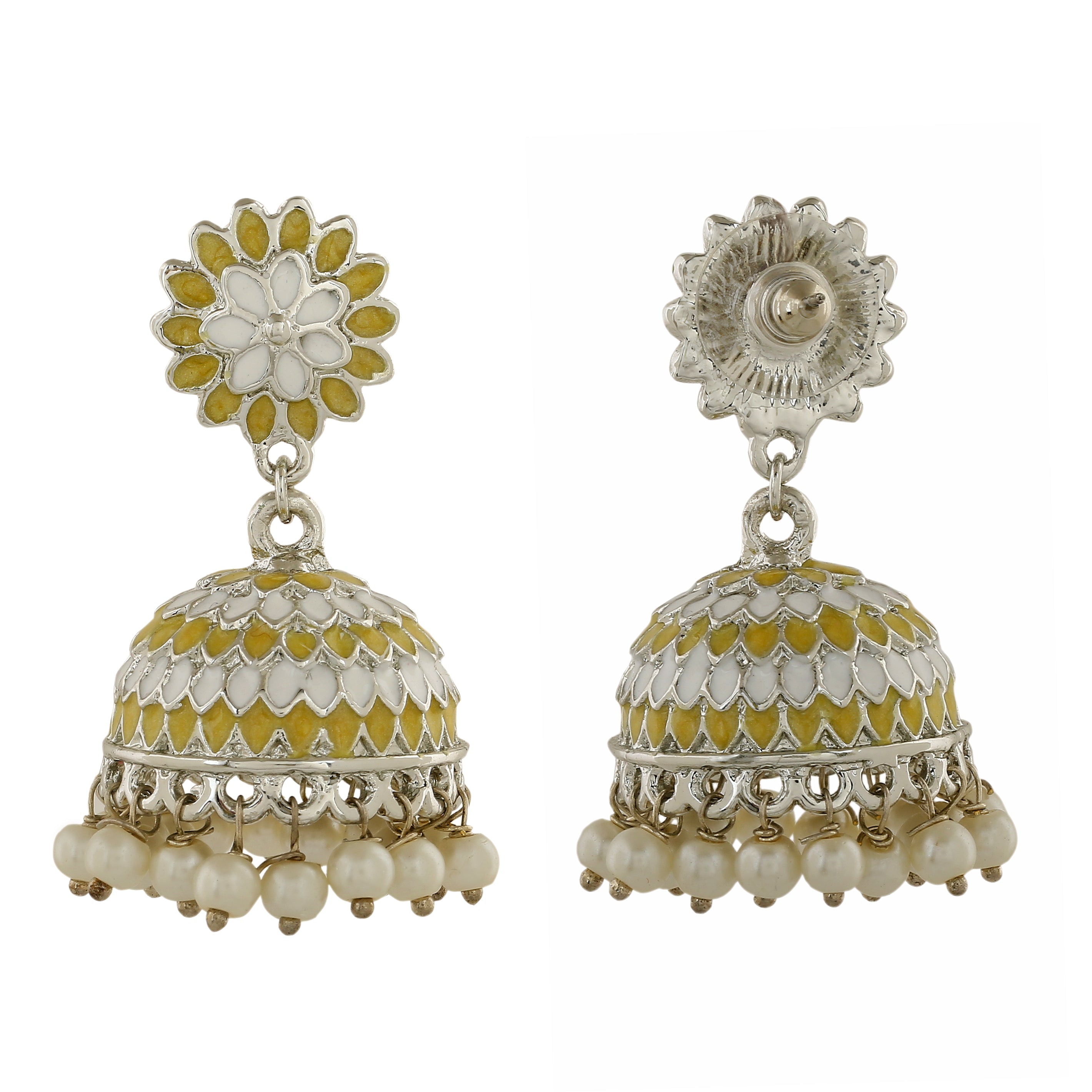 Jhumkis is one of the classic types of earrings which have been in existence for centuries. If yours is incomplete, then this jhumki embellished with pearls is the right pick. Jhumka earrings are a timeless jewelry ornament in which fashion never comes to an end.