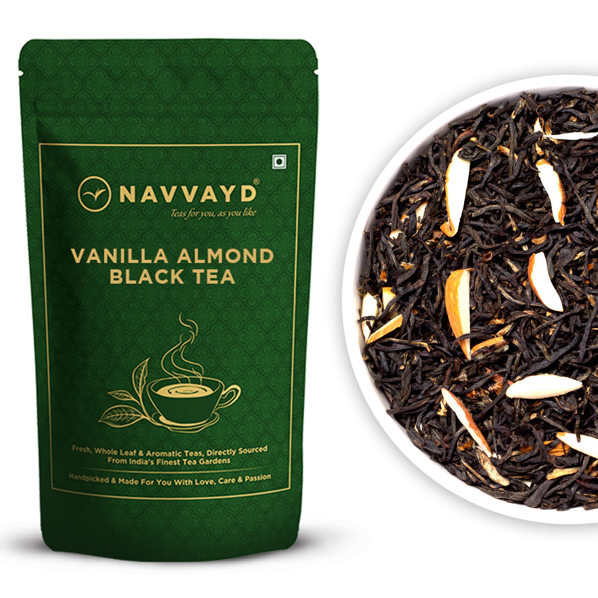"Indulge in the rich and creamy taste of our Vanilla Almond Black Tea, expertly blended with premium Assam black tea, vanilla extract flavor, and roasted almonds. This delightful brew offers a smooth and velvety experience, with the sweet and malty notes of Assam tea perfectly balanced by the nutty flavor of almonds and the hint of vanilla. Enjoy the comforting and soothing aroma of this tea, perfect for a relaxing break or a cozy evening. Our Vanilla Almond Black Tea is a delicious way to add some warmth and comfort to your daily tea routine."
